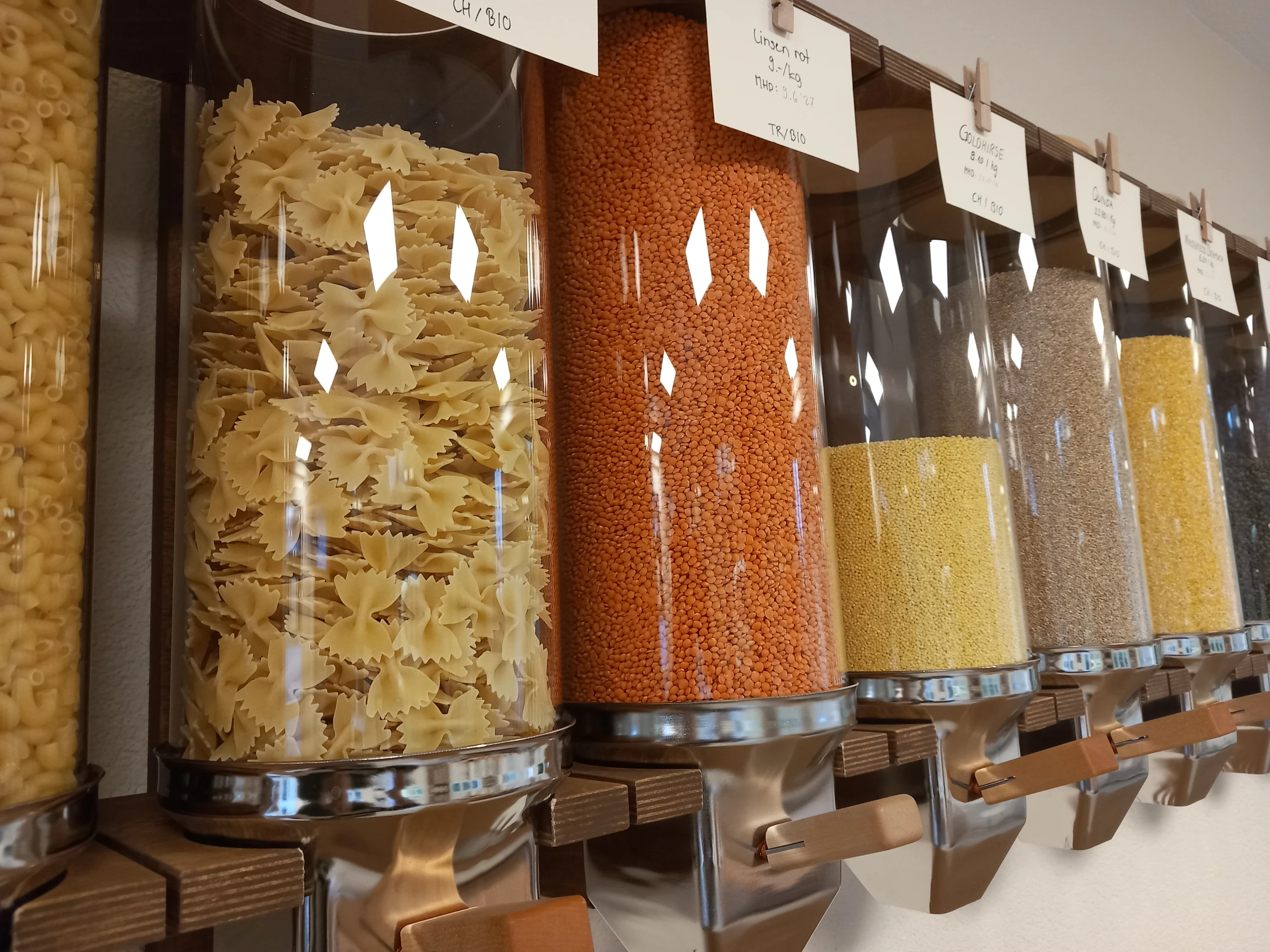 Am Besten füllst du die Esswaren in deine mitgebrachten Behälter ab. Komm gerne auch spontan vorbei. Wir stellen dir ebenfalls Gefässe oder Papiertüten, die gut wiederverwendet werden können, zur Verfügung und unterstützen dich jederzeit während deines Einkaufes.