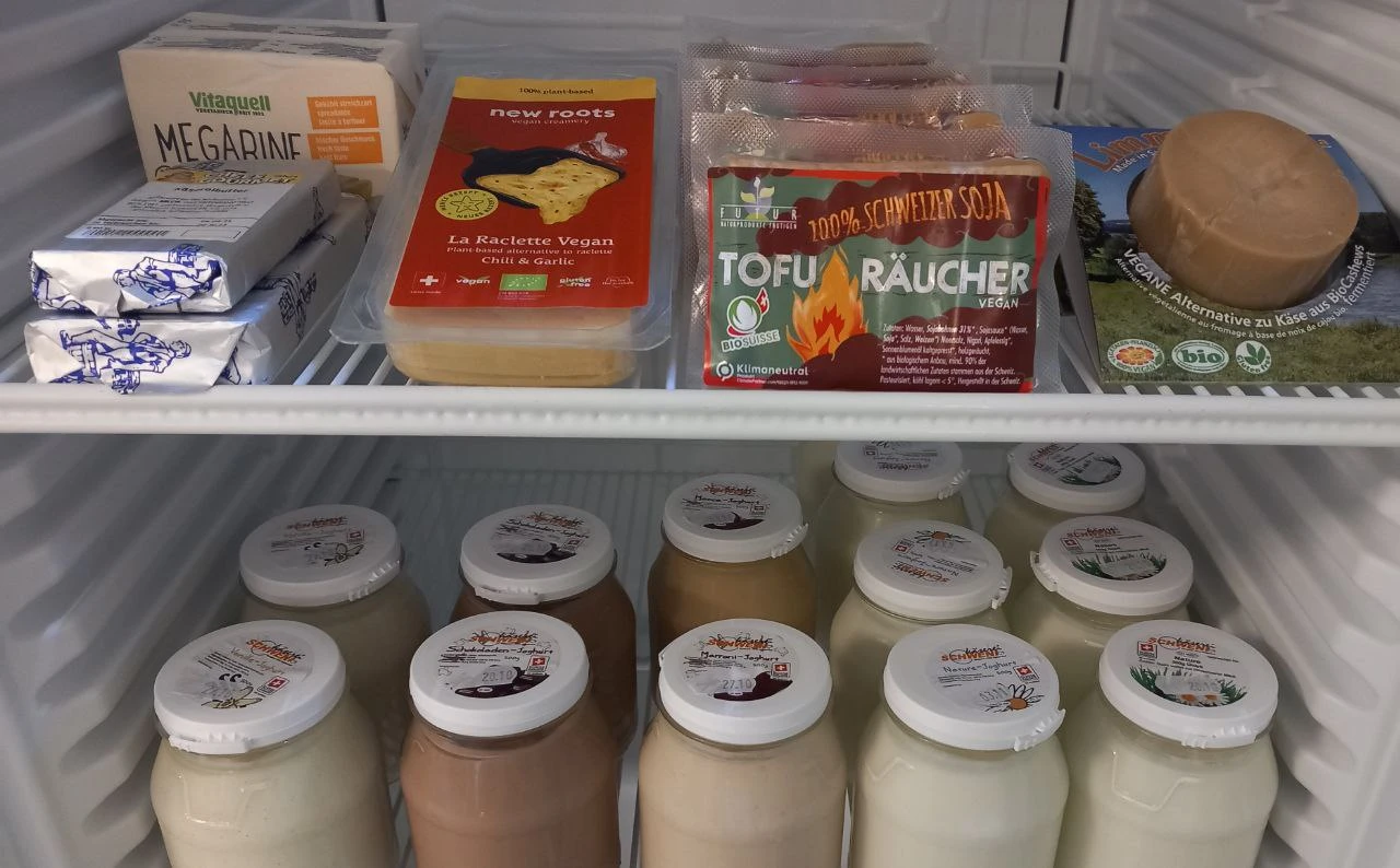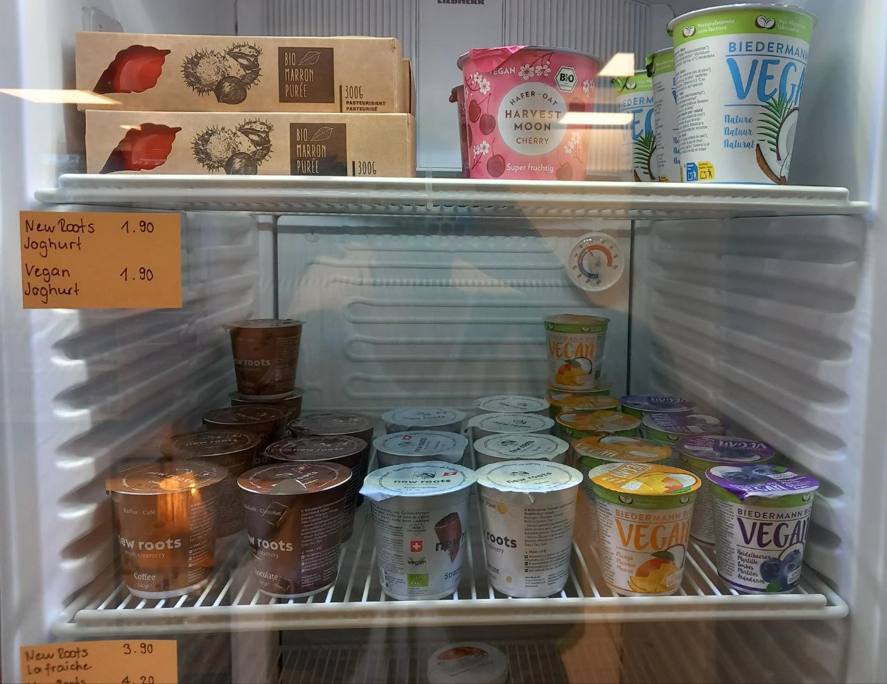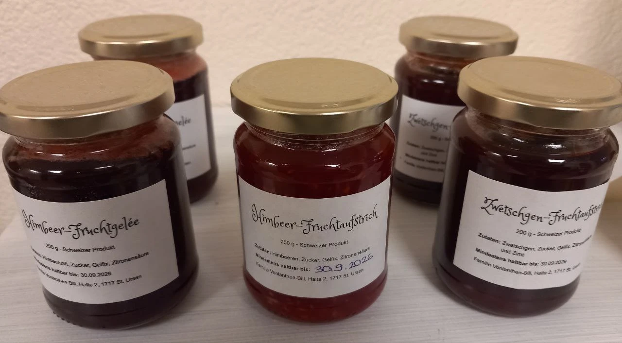 Getränke, Oliven, Chips aus Kallnach, Mandelmus, Tomatensauce, Kokosfett, Joghurt und Butter - auch rein pflanzlich, verschiedene Aufstriche, unter anderem Fruchtaufstriche aus der Region mit wenig Zucker
